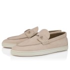 The Chambeliboat boat shoe is characterized by its sleek silhouette. It has a refined design, a white rubber sole and is crafted entirely from Agave green grained nubuck leather. This loafer's tongue is adorned with a metallic collar pin, showcasing Maison Christian Louboutin's creative flair. This model has a more supple construction.