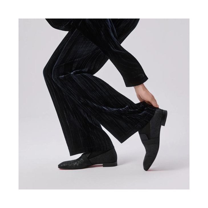The iconic Dandydeco loafer is made from black jacquard marble enhanced with matte and shiny contrasts, and combines the comfort of an indoor shoe and the elegance of a city model. The sleek lines of this model with a strap on the upper are a testament to the savoir-faire of Maison Christian Louboutin. A sophisticated style set on a small square heel.