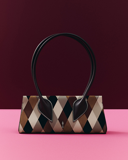The Venus Losange Intarsio bag embodies the timeless elegance and exceptional savoir-faire. Inspired by the iconic harlequin motif, this creation transforms a classic pattern into a contemporary work of art. Each bag is a testament to artisanal mastery: every losange is individually cut and meticulously hand-stitched, forming a harmonious geometric design. The process begins with a digital reconstruction of the motif, followed by precise material cutting and hand assembly using seven carefully selected materials.
